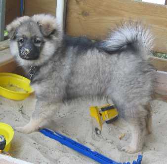 Asterix spielt für sein Leben gerne im Sandkasten und trägt das Spielzeug der Kinder durch die Gegend.