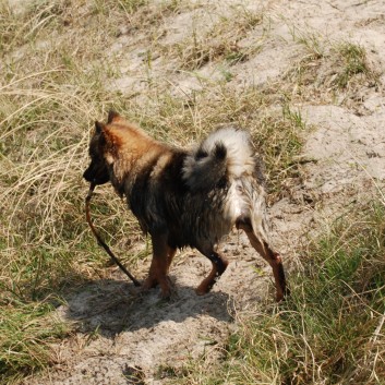 Die Enten auf der anderen Seeseite waren zwar verlockend, aber soweit traut sich Kikki doch nicht ins Wasser.