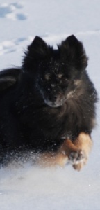 Das Herz von Frauchen gehörte mir zu diesem Zeitpunkt schon, war ich doch eine Tochter von ihrem geliebten Bellchen. Mit Herrchen musste noch etwas diskutiert werden, aber ich war zuversichtlich. Meine Farbe war unschlagbar: Die erste Mittelspitzhündin in black & tan die in Deutschland geboren ist, das gab so noch nicht.